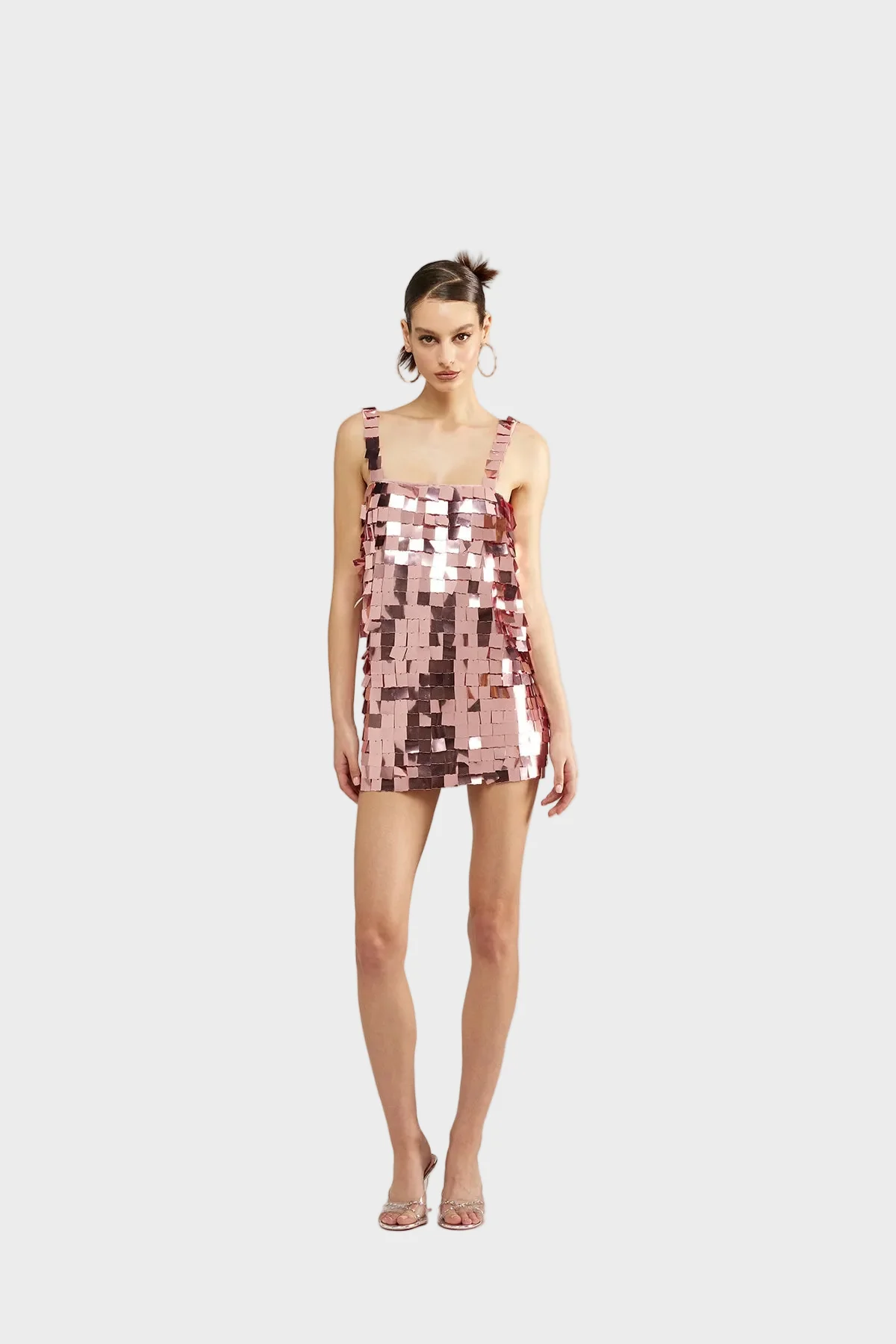 Experience summer night parties like never before with the HS23 Disco Sequins Dress. Featuring a vibrant and vintage design with square and mirror-like sequins, straight hem and thigh-length, this short dress is perfect for glamming it up at the beach or at a fancy party. Light blue or pink, show up to your next disco night in style. This dress will be sure to sparkle with every step you take. Reflective fabric and modern silhouettes come together to give you the perfect glamorous look.